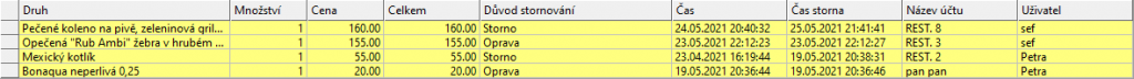Provedení storna položky se projeví v reportech za směnu, tj. v přehledu údajů sledující obraty tržeb za směnu, množství storna, plateb hotovostně a bezhotovostně.