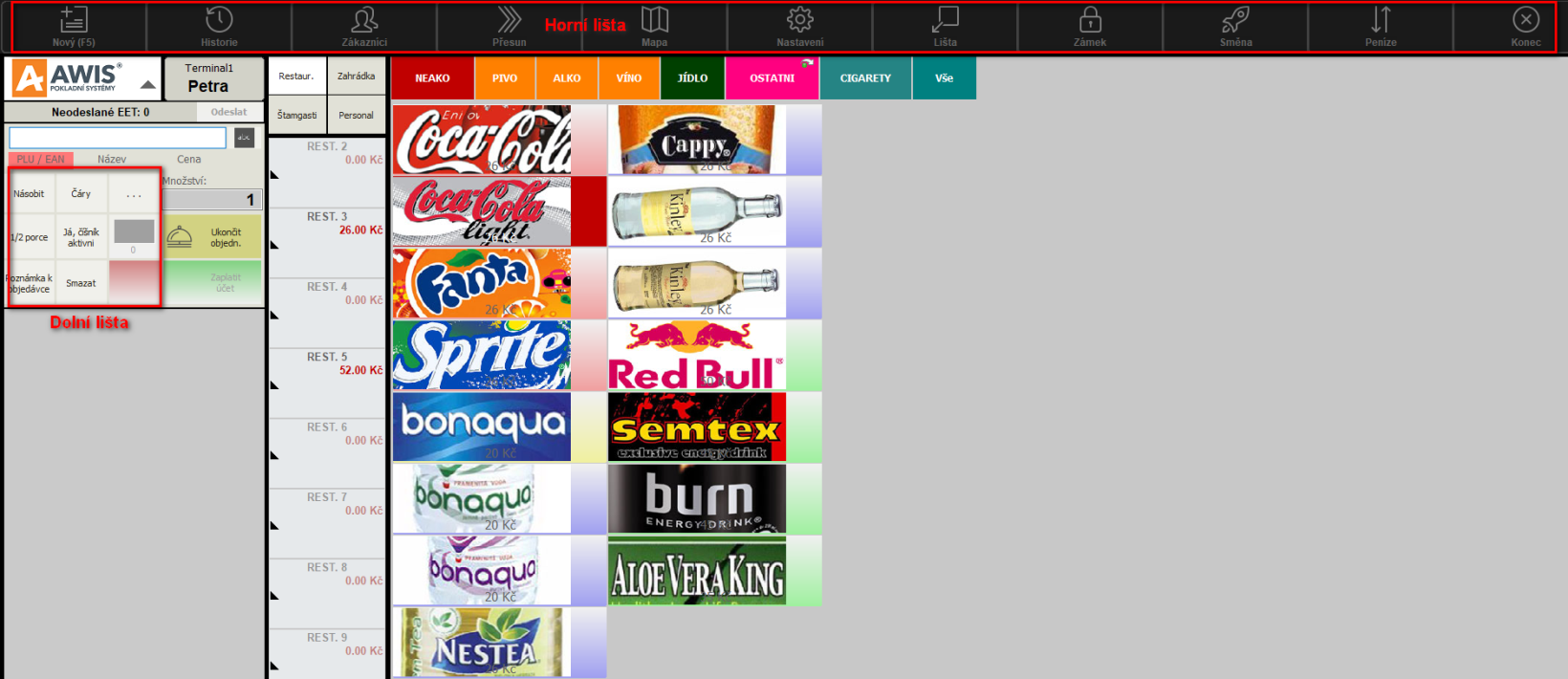 Nastavení pokladny funkcí ,vzhledu , zahájení a ukončení obědů, inventury atd.