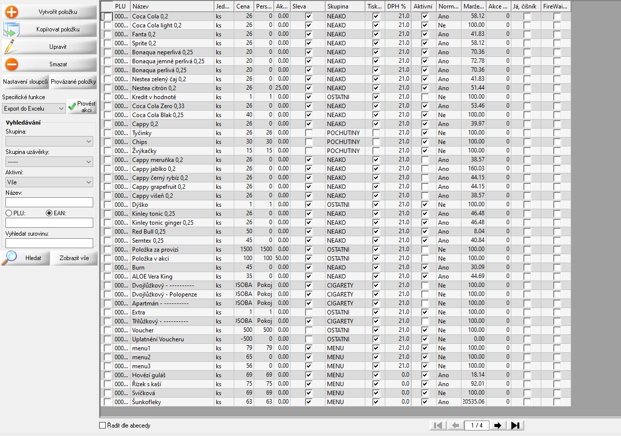 - Kód – vyplní se automaticky nebo ručně pokud využíváme PLU kódy na položku