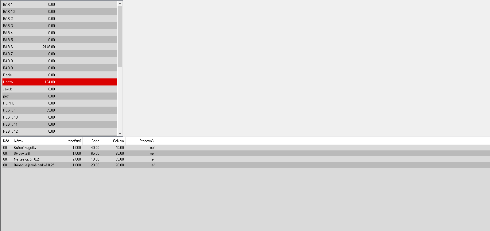 Během směny si můžeme zkontrolovat rozmarkované stoly v sekci Přehled účtu (kasa)