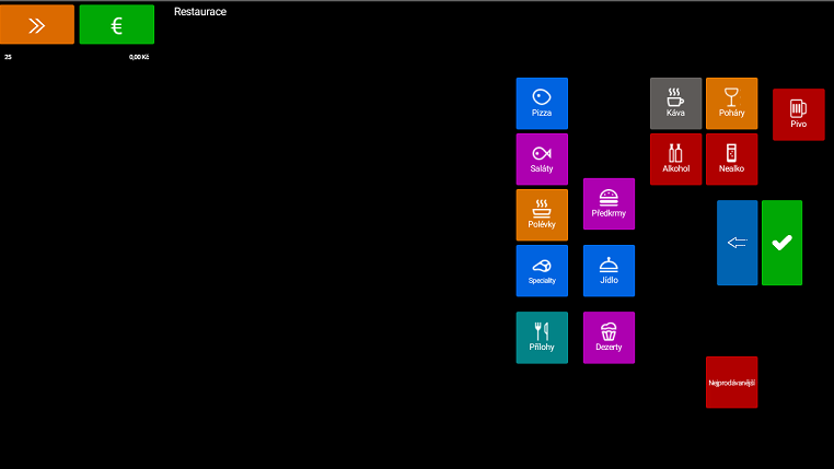 Na základní obrazovce můžeme jakýkoliv účet otevřít a začít okamžitě markovat. Postačí pouze klepnout na zvolený účet, čímž nám aplikace daný účet otevře. Obrazovka je pak rozdělena na dvě části, kterým se budeme podrobněji věnovat na stránce Markování pro Gastro a Obchod. Pokud jste neprovedli žádnou akci, klikněte na tlačítko Tlačítko zpět.